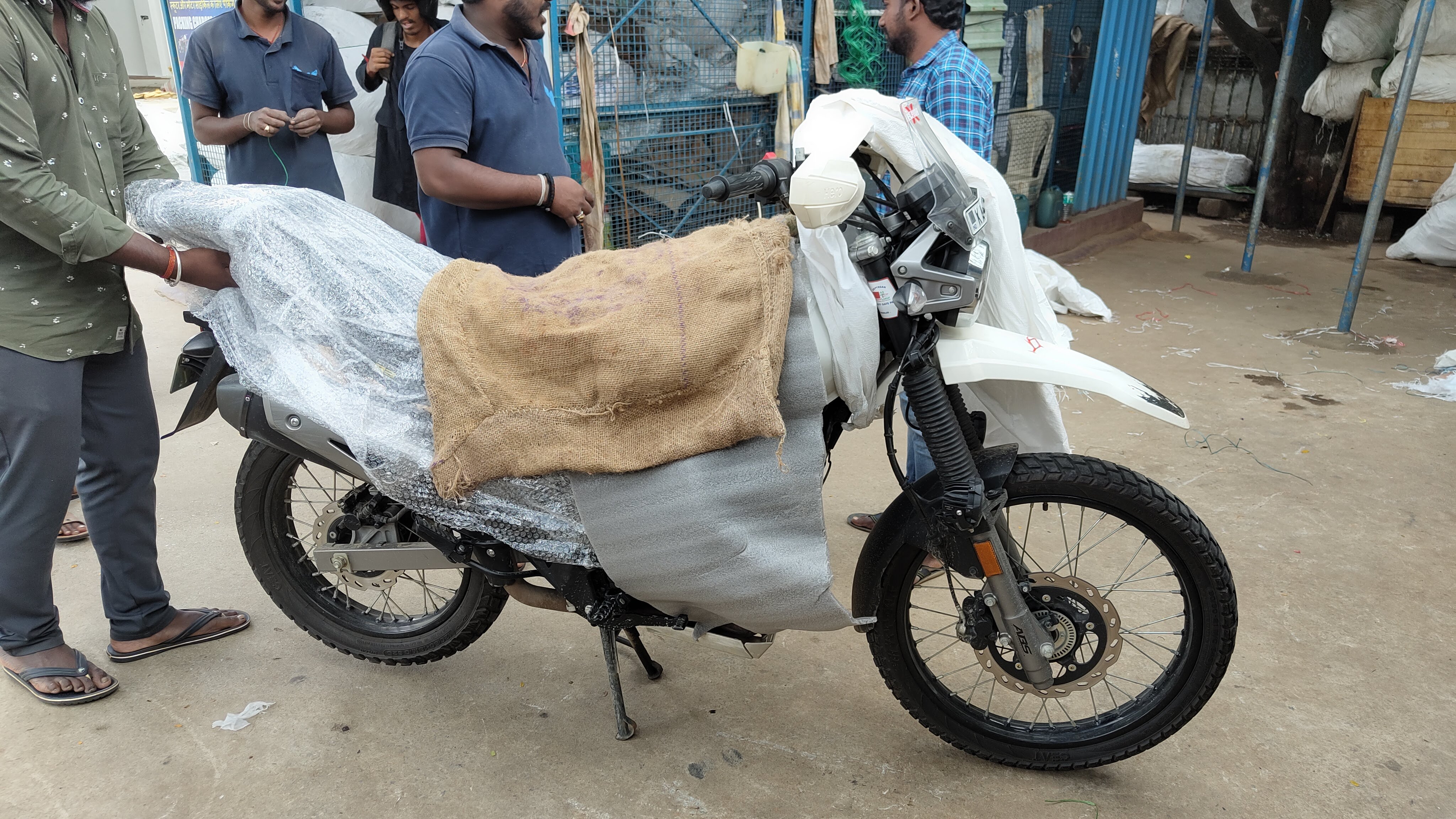 Immediately on the right of the entry gate is the packaging station. I parked the Xpulse there, and went about looking for the office. Picked up the forms, went back to the packaging station to get the Xpulse ready for shipping. Got all the luggage off, and the packaging process started.